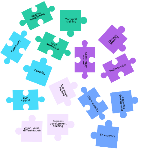 Centralized content with a configurable library and easy to use dashboard for coaching, BAC certification for your coaches and Unique Financial Professional journeys
